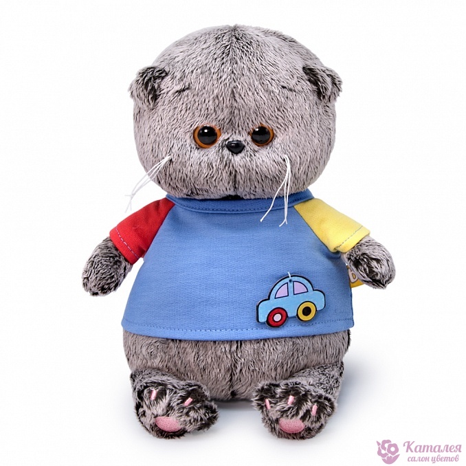 Игрушка Bacik&Co в футболке с машинкой, 20 см. Для дополнения к цветам, и для индивидуального подарка!