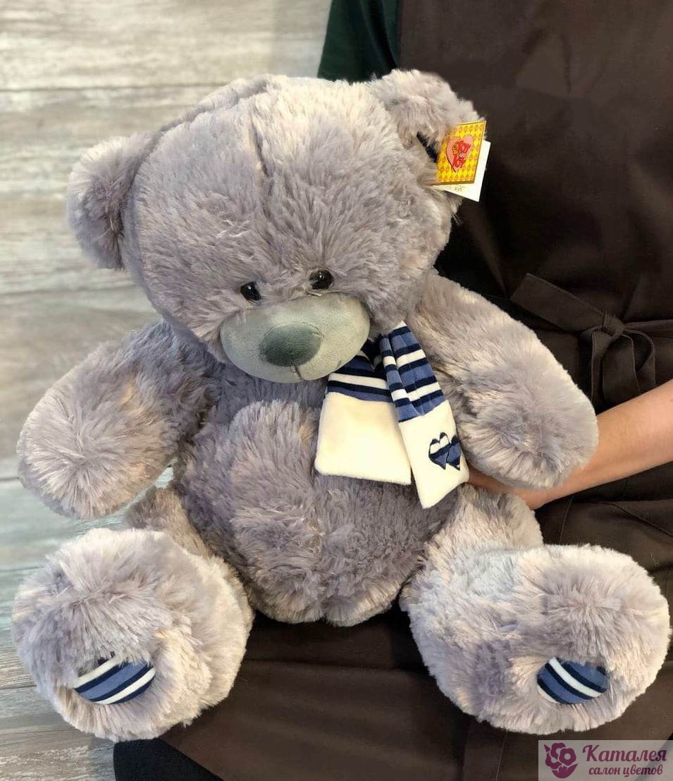Игрушка Медведя серый с шарфом. Для дополнения к цветам, и для индивидуального подарка!
