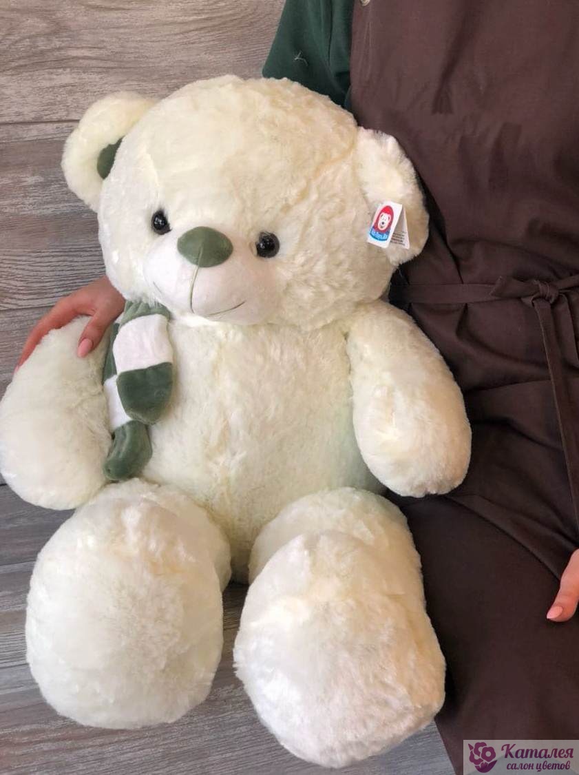 Игрушка Медведя белый с шарфом. Для дополнения к цветам, и для индивидуального подарка!