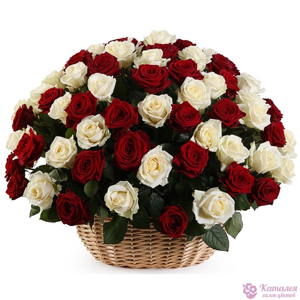Корзина из 51 белой и красной розы