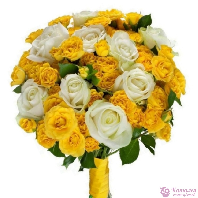 Букет для невесты из желтых и белых роз