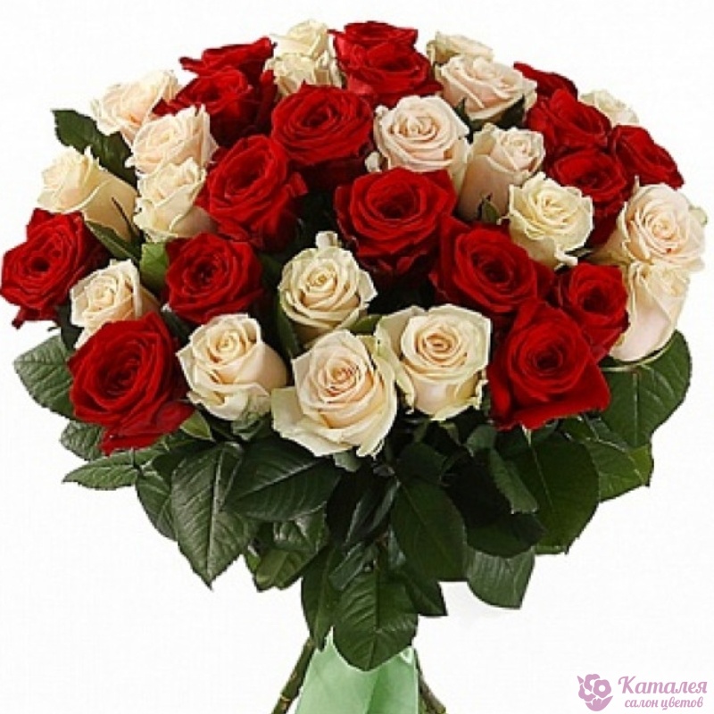 Букет из 51 красной и белой розы