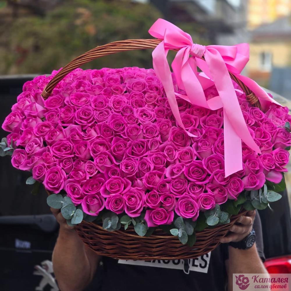 Акция! 201 красная роза в корзине
