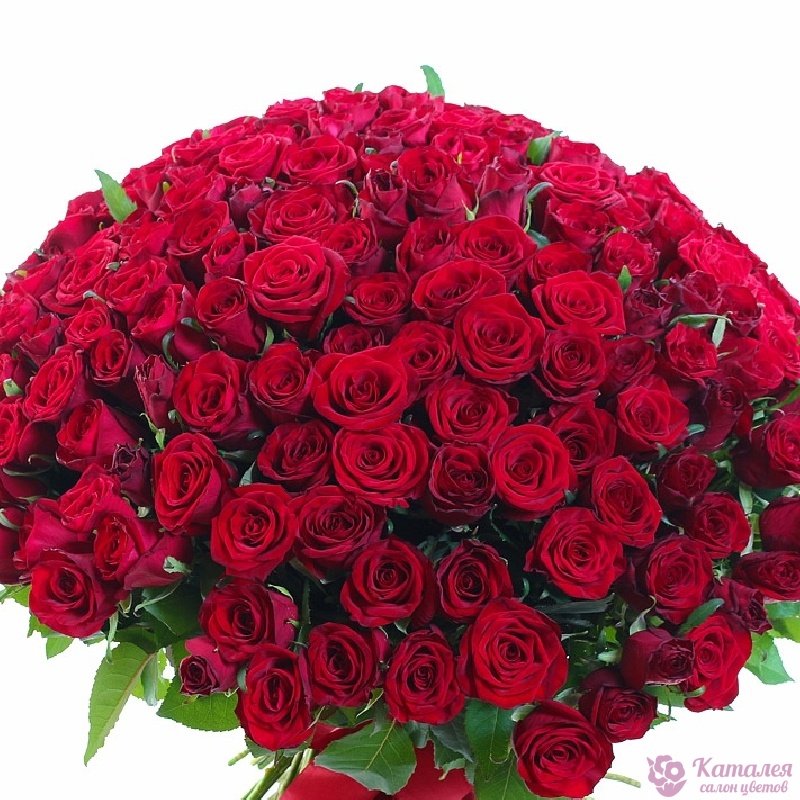 Букет из 201 красной розы с зеленью