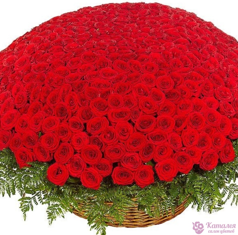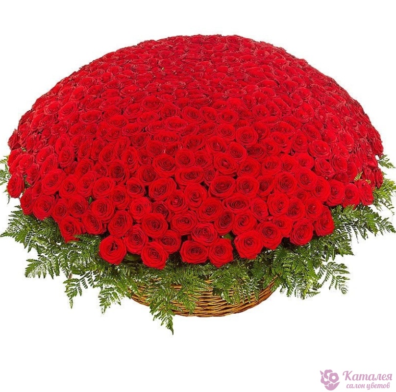 Корзина из 501 красной розы с зеленью