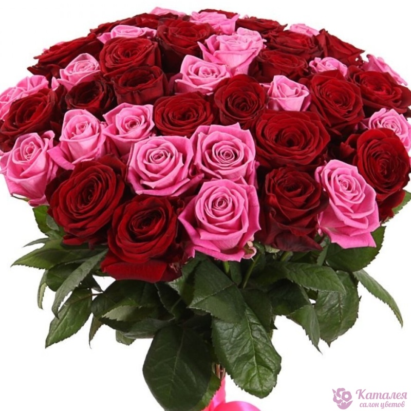 Букет состоит из 23 красные розы, 22 розовые розы, прозрачная упаковка, атласная лента.