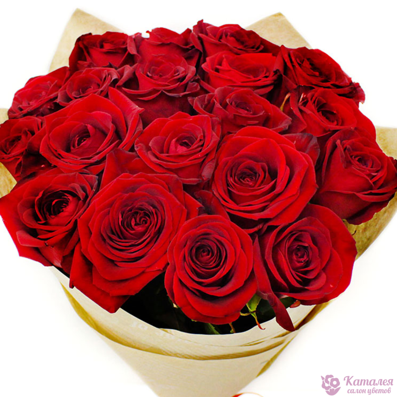 Букет из 21 красной розы в крафте