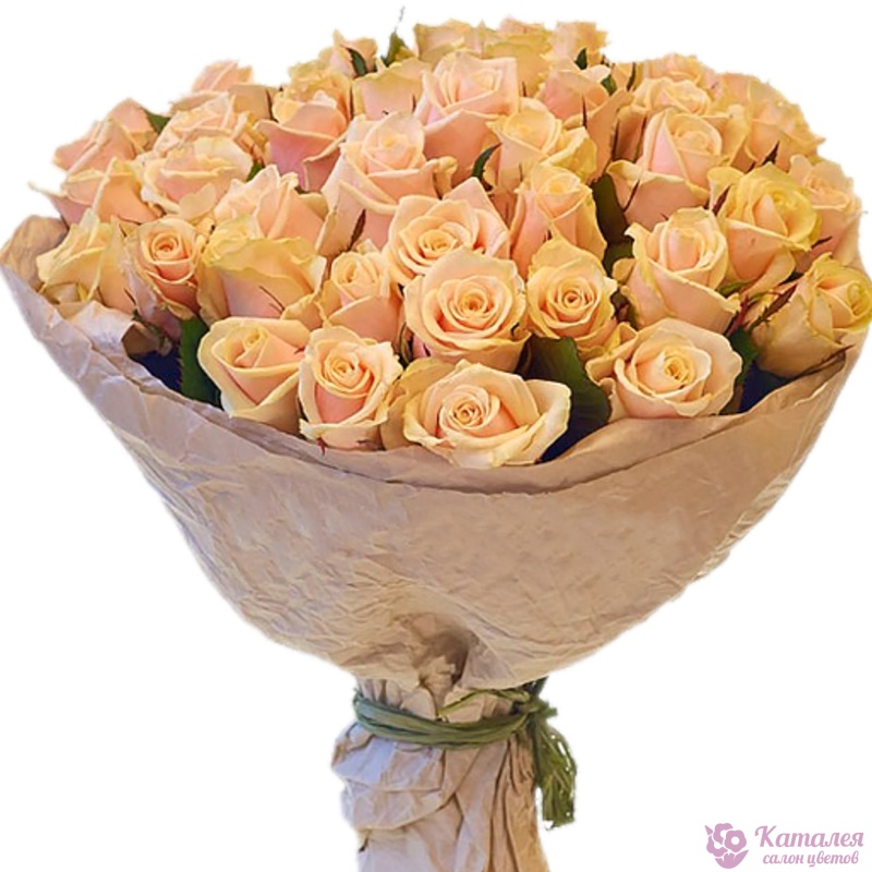Букет состоит из 45 кремовых роз, крафт, атласная лента.