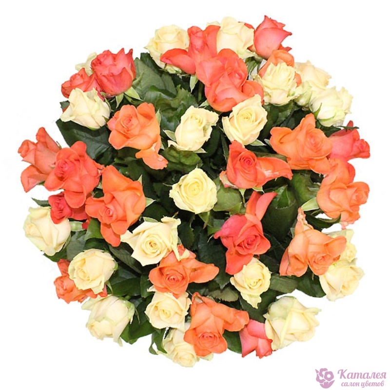 Букет состоит из 26 кремовой розы, 25 оранжевой розы, красивая упаковка, атласная лента.