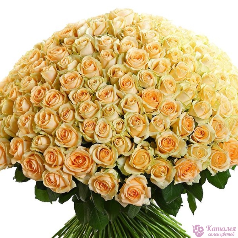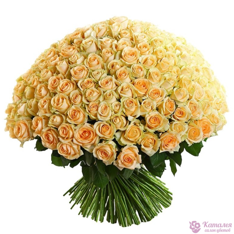 Букет состоит из 151 кремовая роза, прозрачная упаковка, атласная лента.