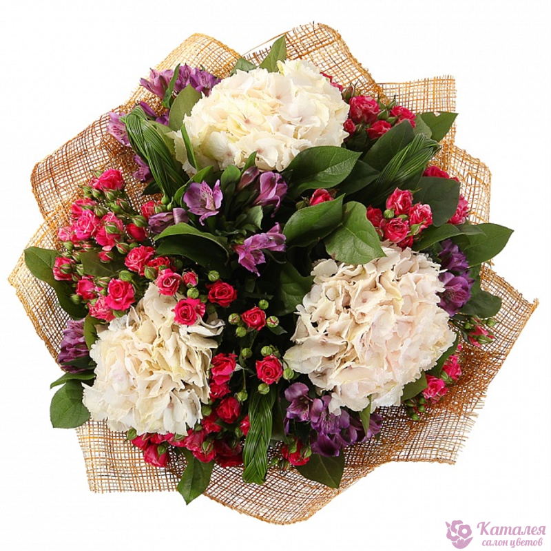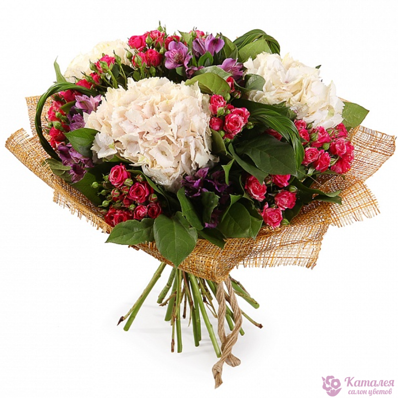 Альстромерия 5 шт., Гортензия 3 шт., Роза кустовая 9 шт. |