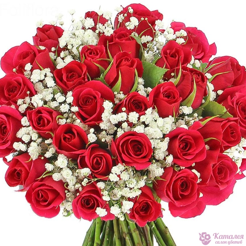 Гипсофила 7 шт., Роза 55 шт. |