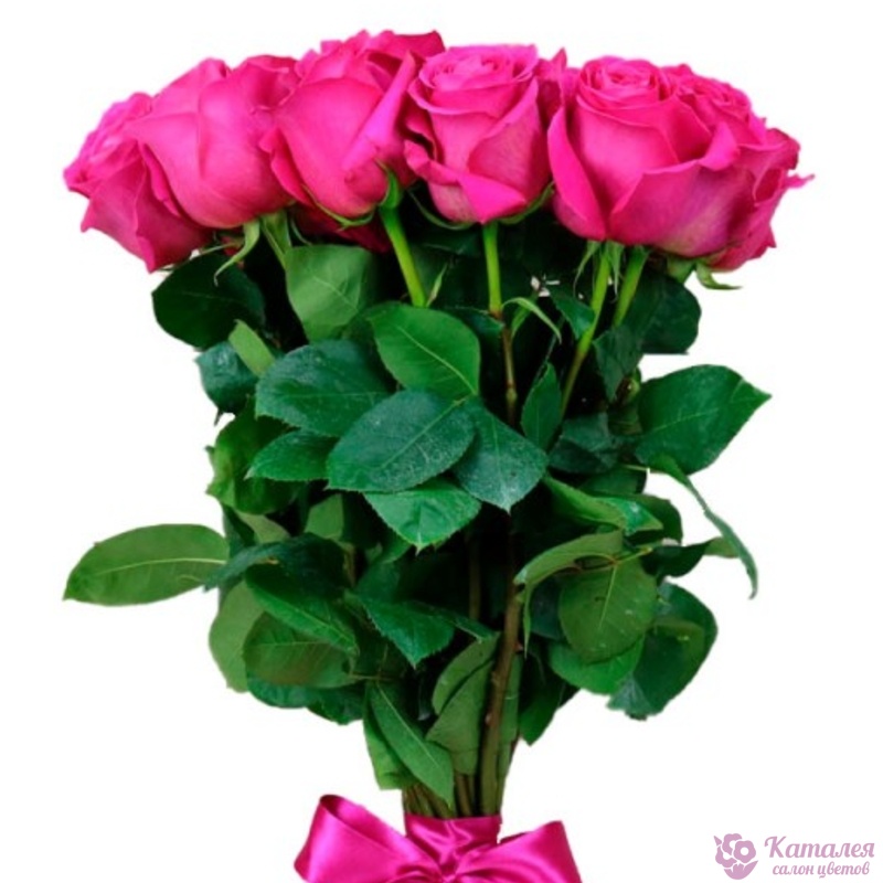Букет состоит из 15 малиновых роз, прозрачная упаковка, атласная лента.