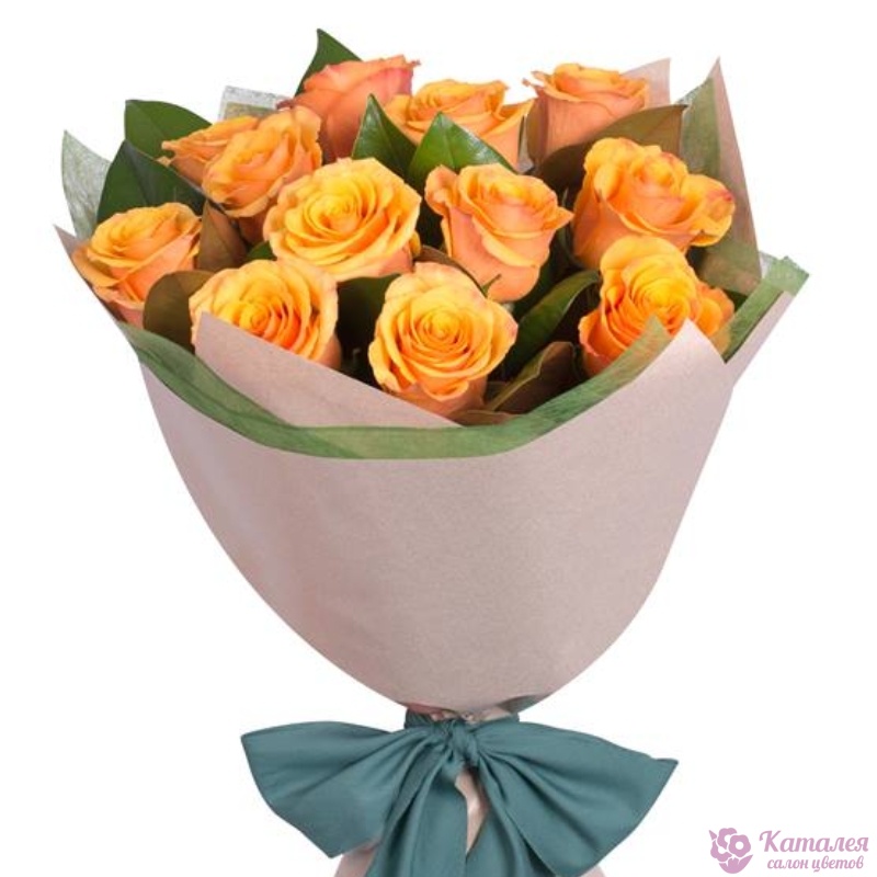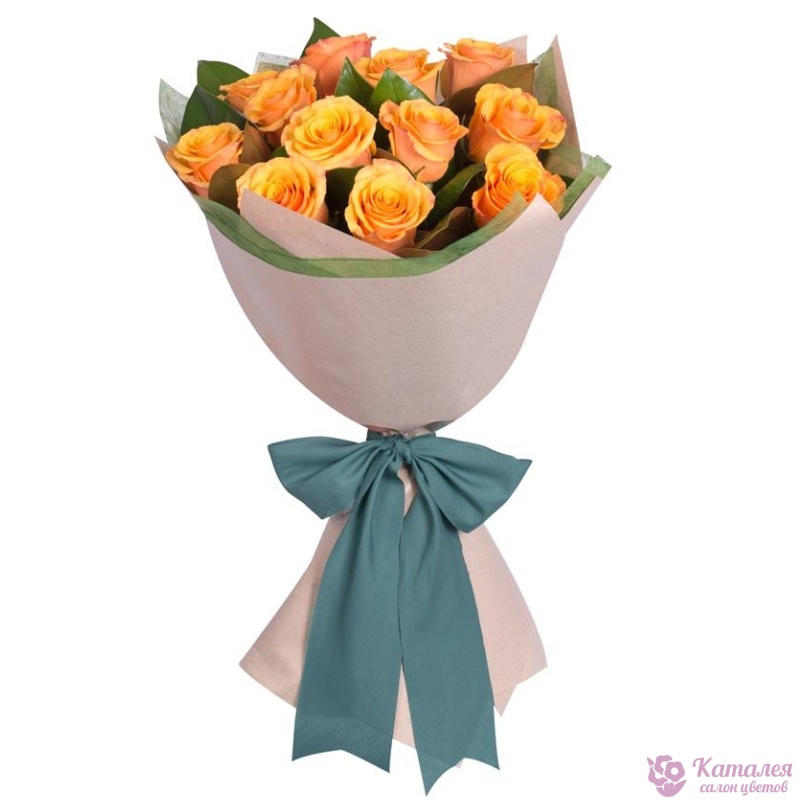 Букет состоит из 15 оранжевых роз, красивая упаковка, атласная лента.