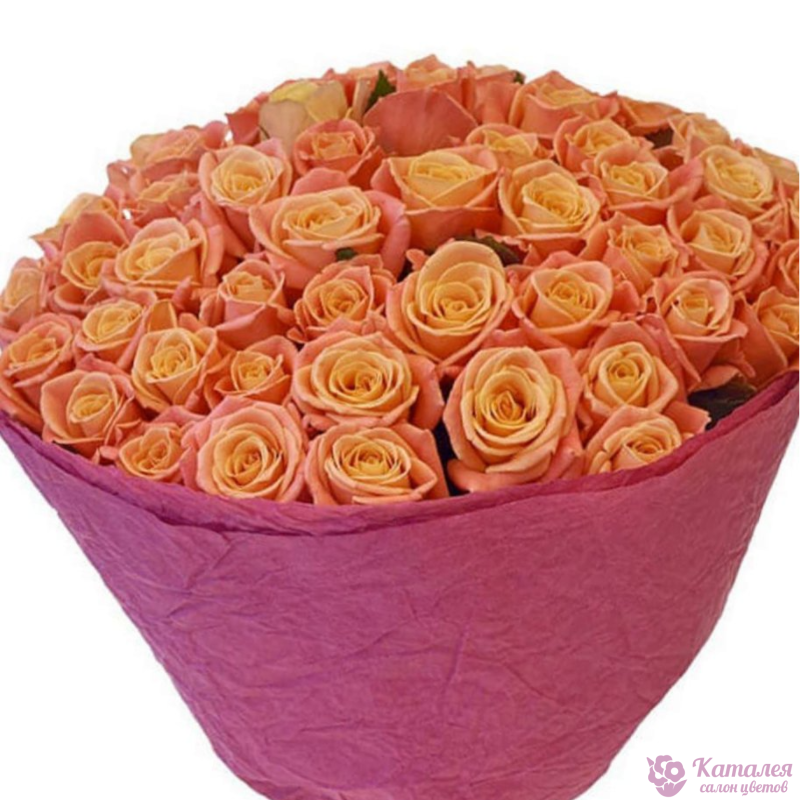 Букет состоит из 51 оранжевая роза, красивая упаковка, атласная лента.