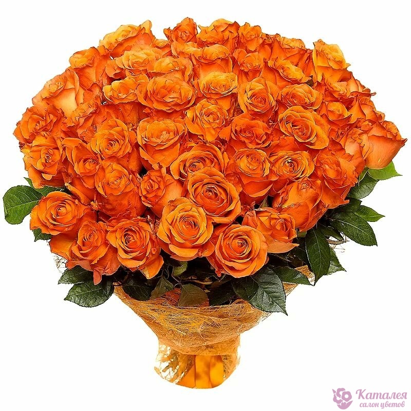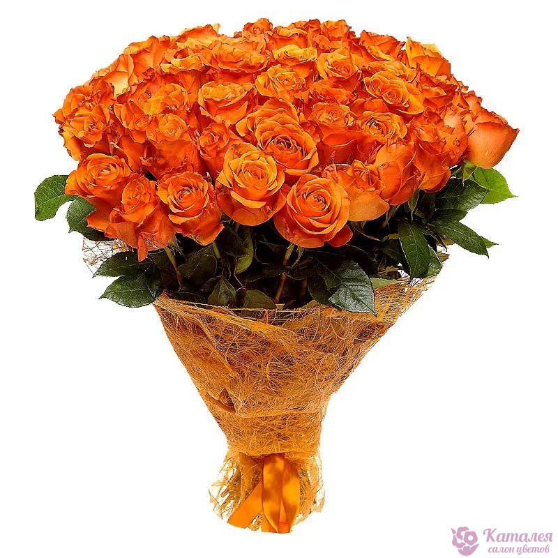 Букет состоит из 55 оранжевых роз, красивая упаковка, атласная лента.