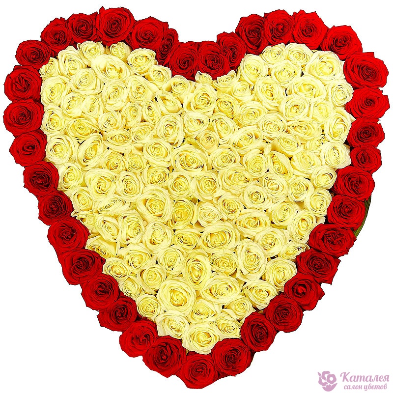 Сердце из 151 красной и белой розы