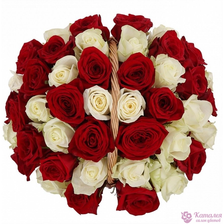 Корзина из 35 белых и красных роз