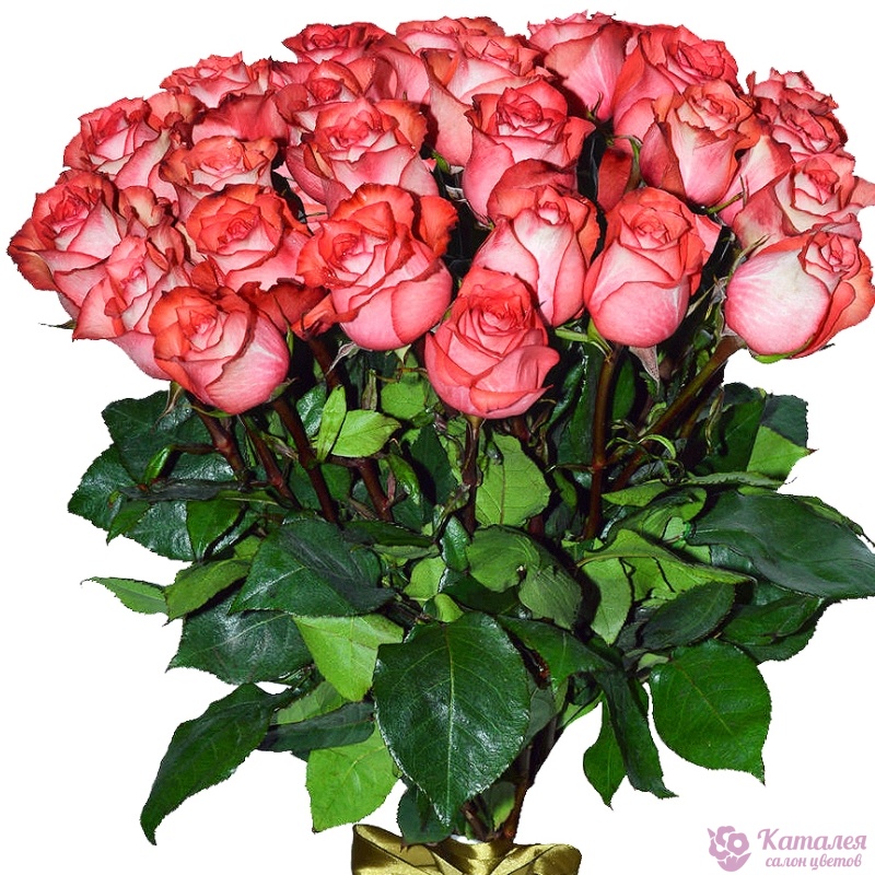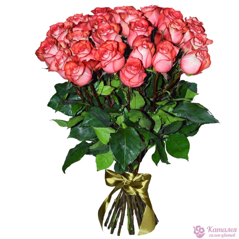 Букет состоит из 31 розовая роза, прозрачная упаковка, атласная лента.