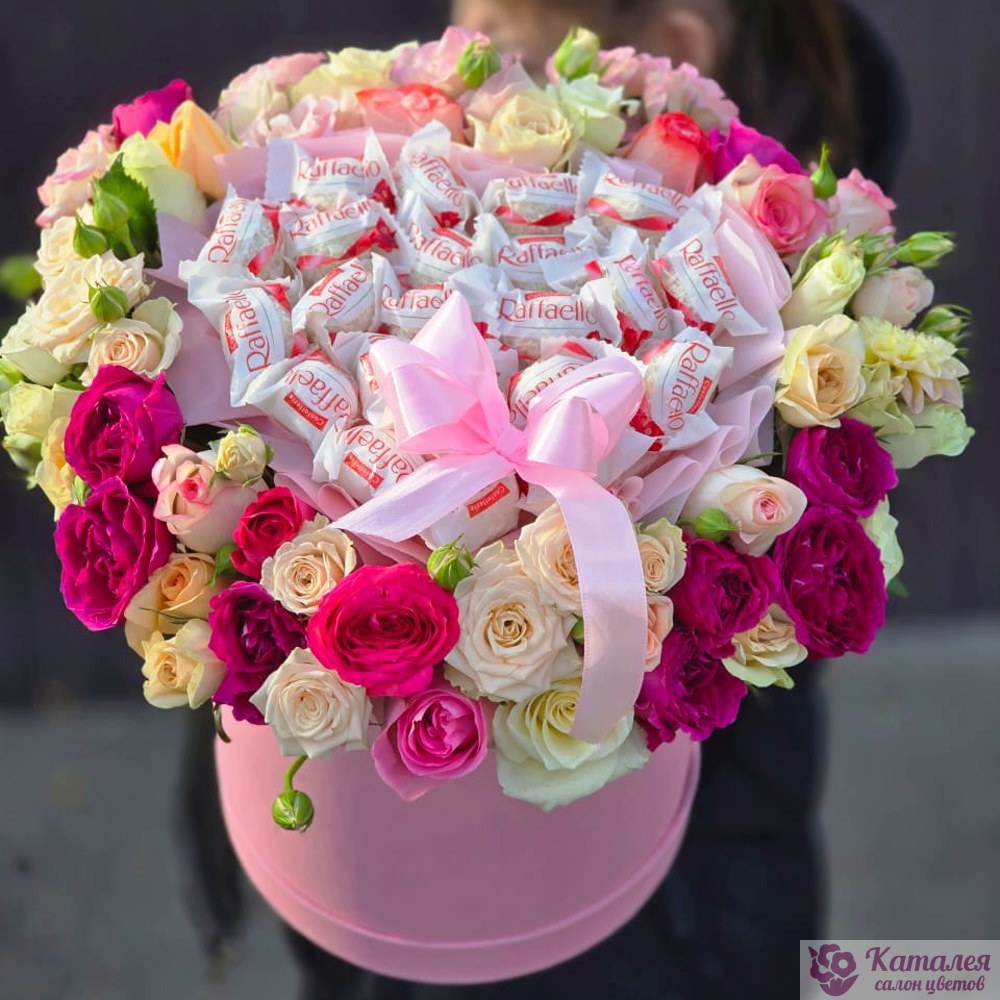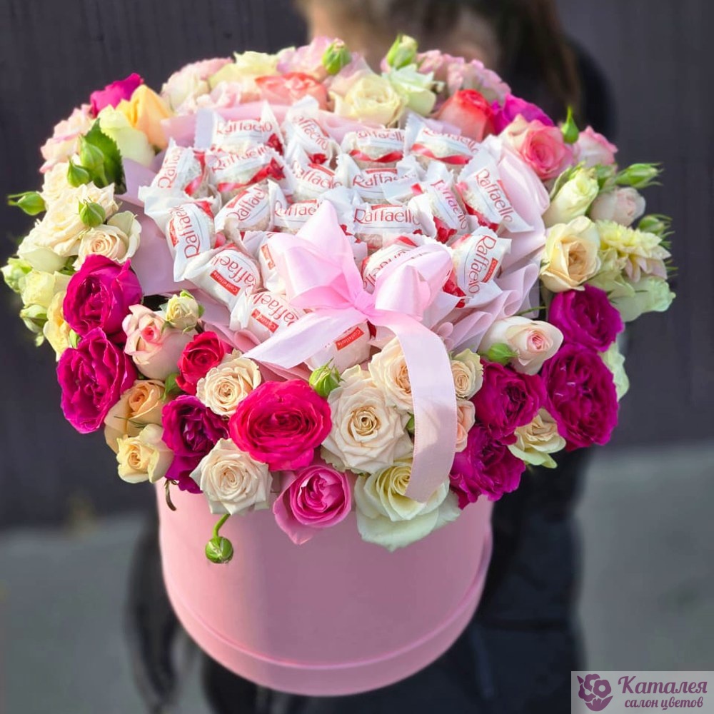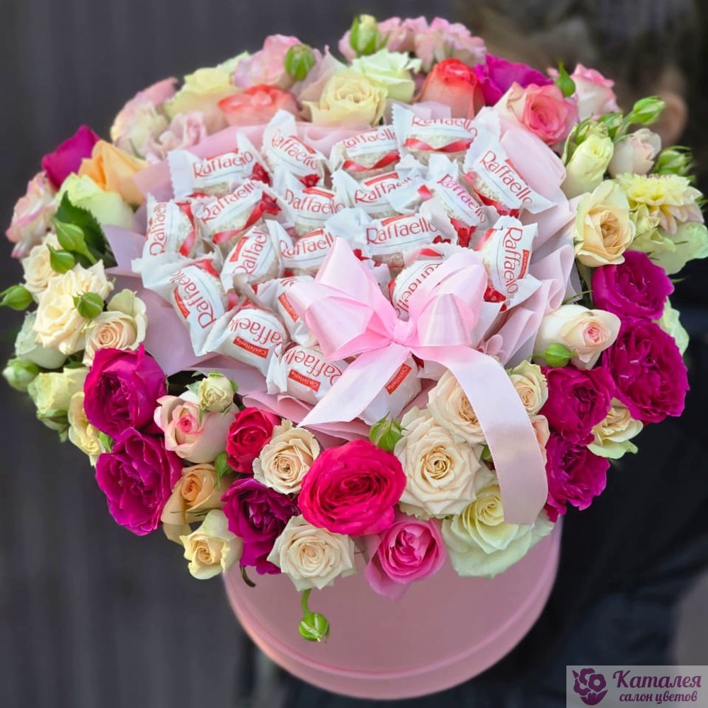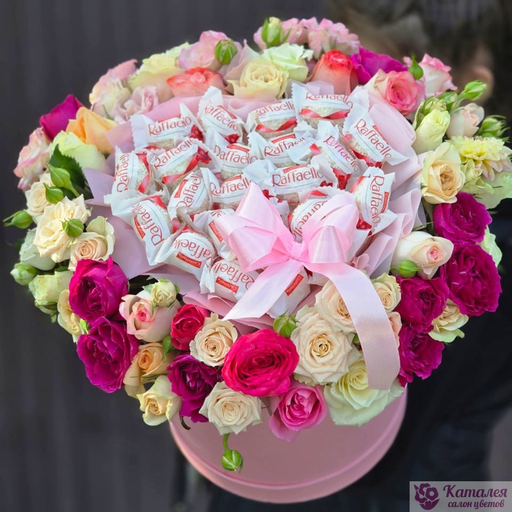 Коробочка из кустовых роз и Raffaello