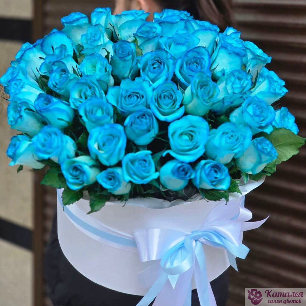 55 синих роз в коробке