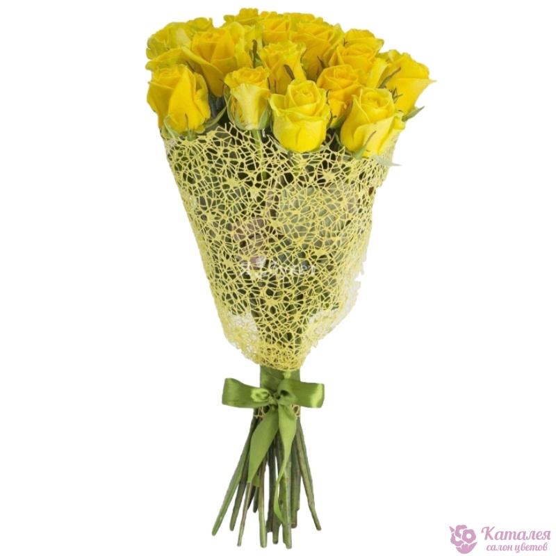 Букет состоит из 17 желтых роз, красивая упаковка, атласная лента.